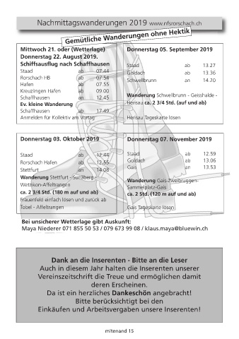 Nachmittagswanderungen 2019 www.nfsrorschach.ch