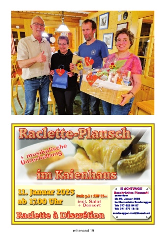 11. Januar 2025               Preis p.P. : CHF 35.--  Beschränkte Platzzahl