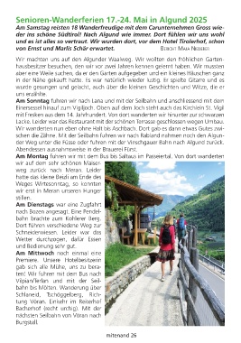 Senioren-Wanderferien 17.-24. Mai in Algund 2025